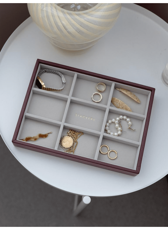 De Statement Jewellery Layer is een meerdelige laag, met 9 secties om je sieraden netjes georganiseerd te houden - ideaal voor ringen, oorbellen, kettingen en armbanden. Ontworpen om in elk van de secties zowel het Hangaccessoire als het Oorbelaccessoire te passen. Voeg deze laag toe aan je Stackers-sieradendoosje of gebruik deze als losse opslagruimte op een ladekast of in een ladeOnze unieke stapelbare sieradendoosjes zijn slim ontworpen zodat je je eigen kunt maken door te kiezen welke lagen en accessoires het beste bij je sieradencollectie passen.
