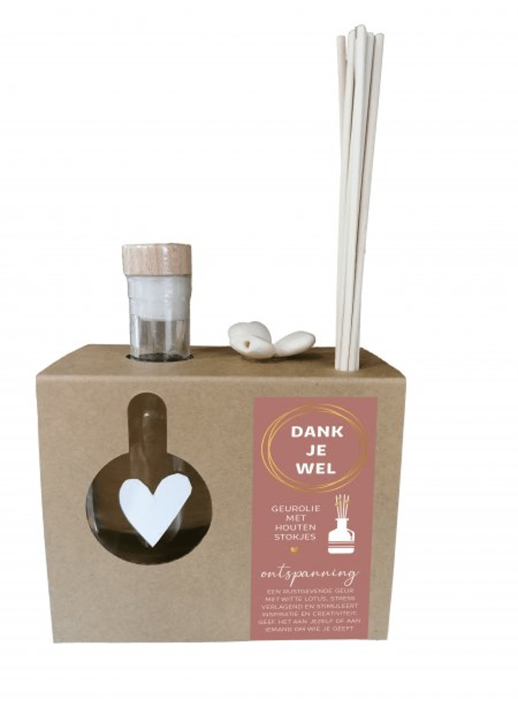 De geurolie met stokjes - Hartewens is ideaal om te geven als cadeau met een persoonlijke boodschap. Het natuurlijke ontwerp maakt het geschikt voor elke gelegenheid, of het nu om warmte, liefde of dankbaarheid gaat.