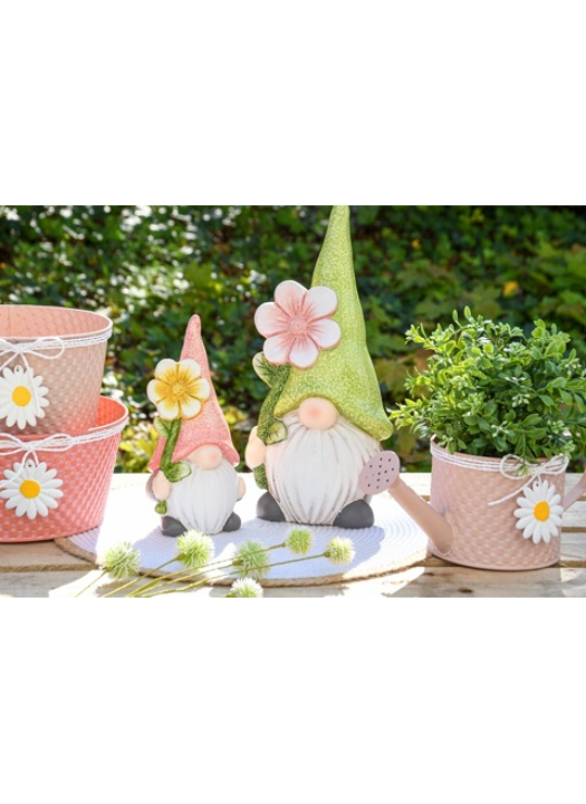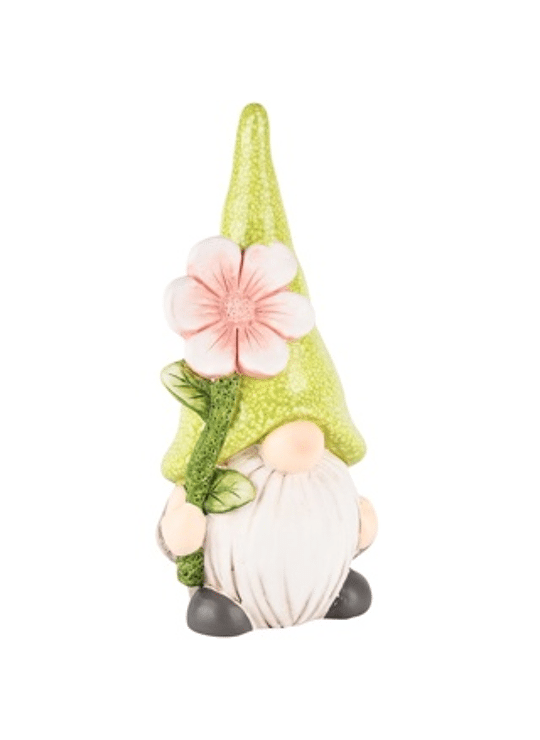 Gnoom met bloem groen/roze 14x11x32cm