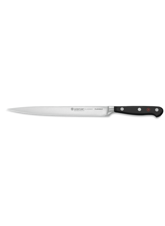 Het extra flexibele lemmet van het WÜSTHOF Classic 8" flexibele fileermes is ontworpen voor gemakkelijk, wendbaar en flinterdun snijden, vooral als het gaat om delicatere taken zoals het uitbenen of villen van malse visfilets. Tot de speciale talenten van het flexibele fileermes behoren ook het schillen van groenten en fruit en het uitbenen van kleinere stukken vlees, zoals kippenpoten