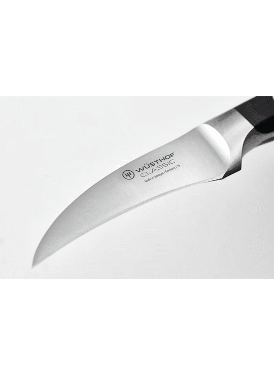 Bijzonder handig voor het schillen en reinigen van ronde groenten en fruit: dit kleine, handige schilmes - ook wel draai- of tournemes genoemd - met zijn korte, vogelsnavelvormige gebogen lemmet maakt het gemakkelijk om producten zoals aardappelen of appels snel te schillen, waardoor de waardevolle vitamines die direct onder de huid worden aangetroffen, behouden blijven. De effen rand van het dunschiller / Tourne-mes maakt zeer nauwkeurige sneden mogelijk, waardoor het de ideale hulp is bij het uithollen en decoreren van groenten en fruit.