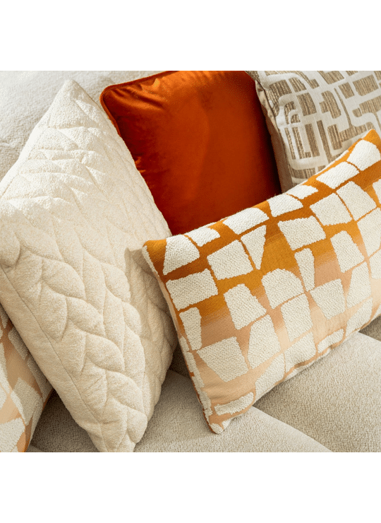 Kussenhoes Maddy valt op door het stijlvolle vlechtpatroon en de rustige, lichte uitstraling.