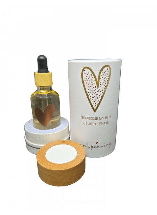 GEUR VOOR THUIS – Gold Editie is een luxe geurcadeau bestaande uit geurolie en een geursteentje. De combinatie van goud, wit en brons zorgt voor een warme, rustige uitstraling in ieder interieur.