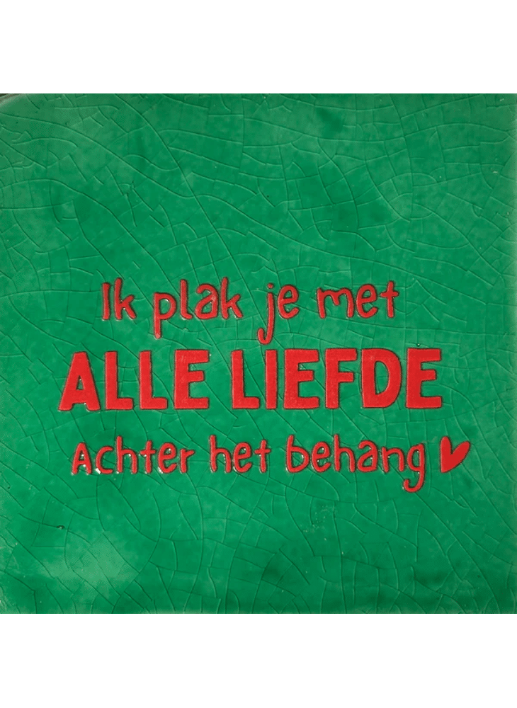 Quote tegeltje: "Ik plak je met alle liefde achter het behang"
