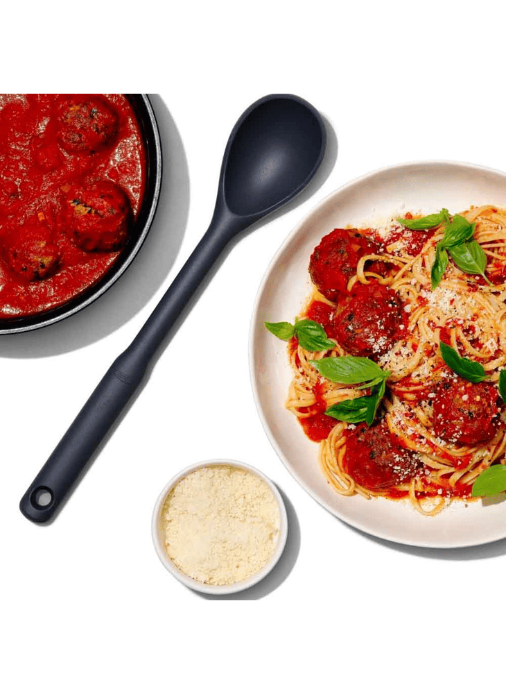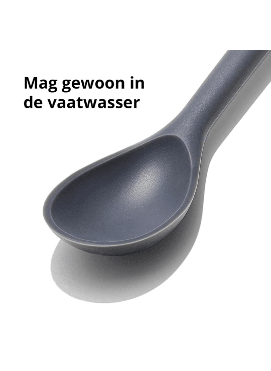 Met veel gemak roer je, schep je en serveer je allerlei gerechten. De lepel is hittebestendig en veilig voor de anti-aanbaklaag. Na gebruik mag de mooie, grijze groentelepel gewoon in de vaatwasser.