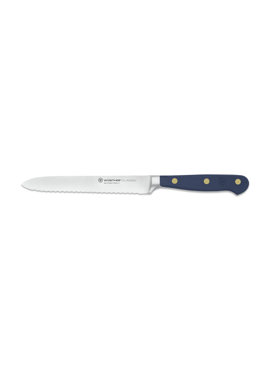 De stijlvolle partner voor het ontbijt, de brunch of het bereiden van je lunchpakket! Het WÜSTHOF Classic Colour worstmes met kleurrijke grepen snijdt dankzij zijn fijne kartelrand niet alleen zuiver door broodjes, rijpe tomaten, fruit en vleeswaren, maar zorgt ook voor een kleurrijke portie design in je keuken.